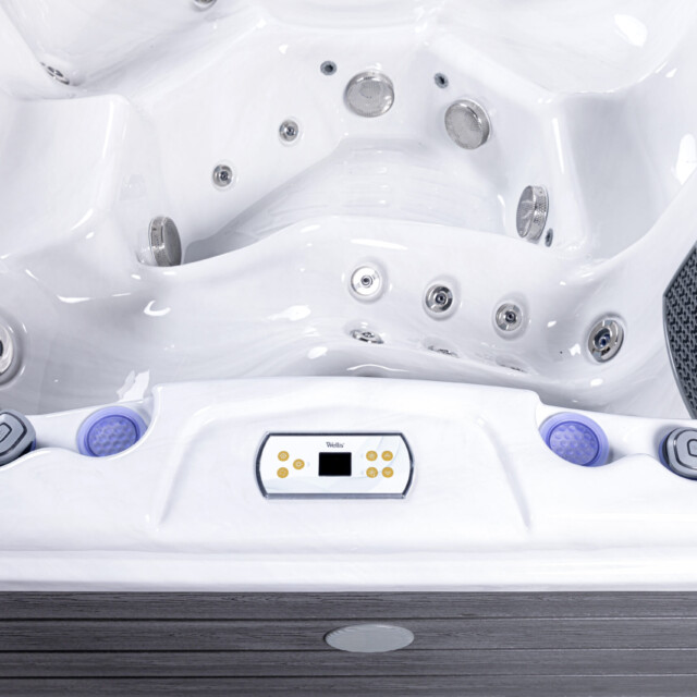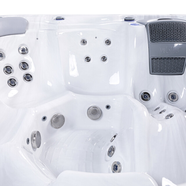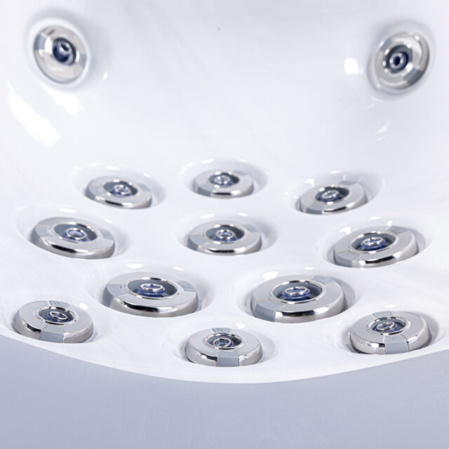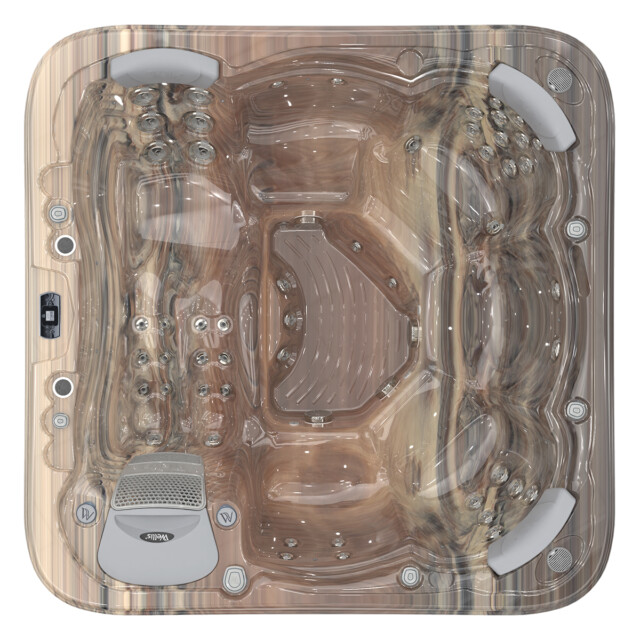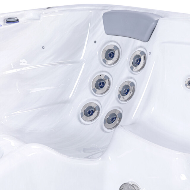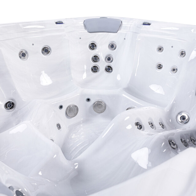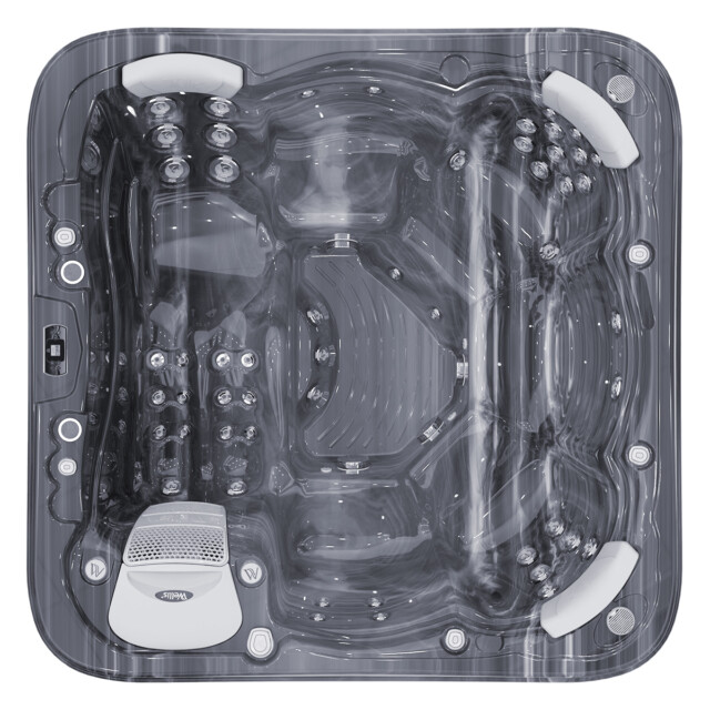 👤 1 Lounge Seat + 5 Upright 💧 52 Hydrotherapy Jets 📏 91" x 91" Square