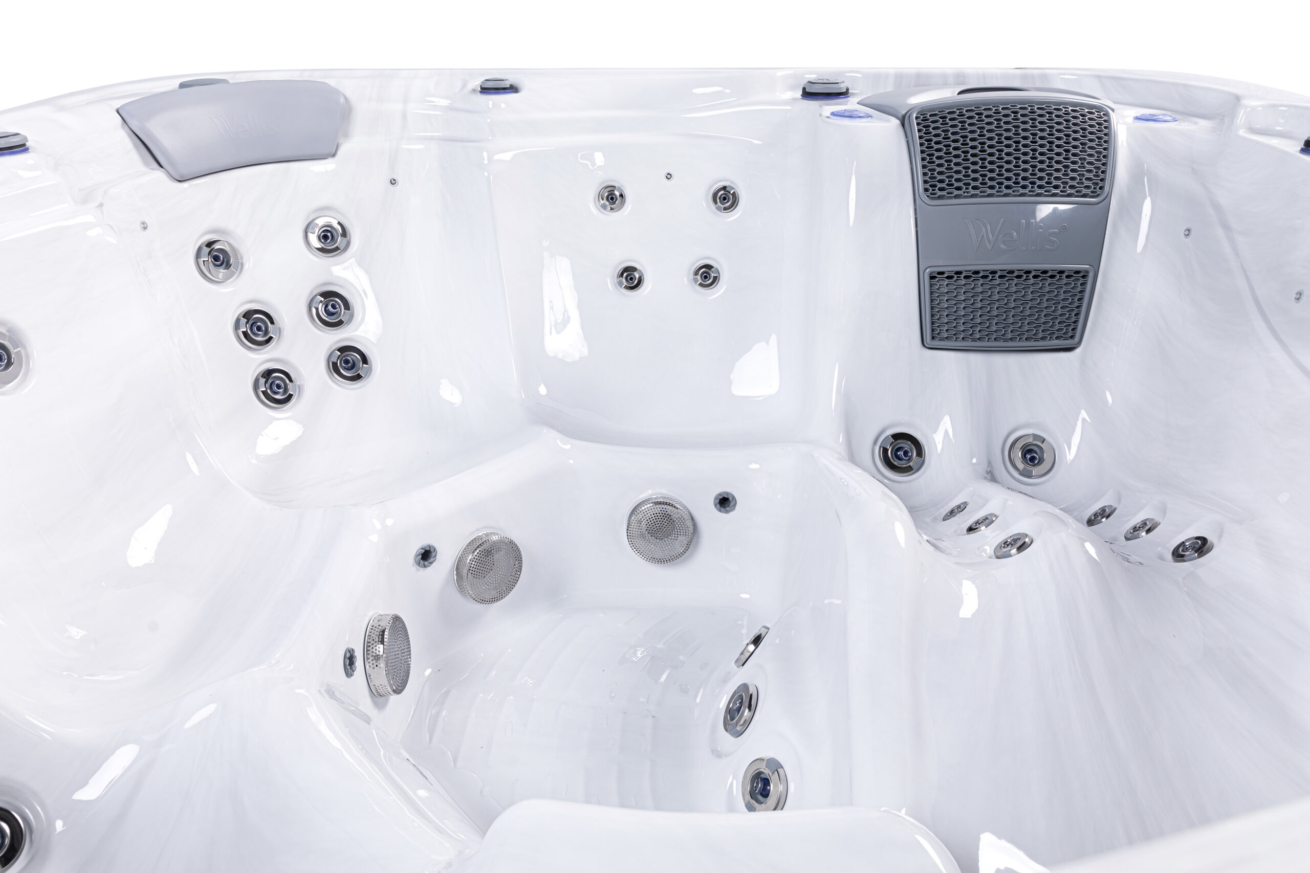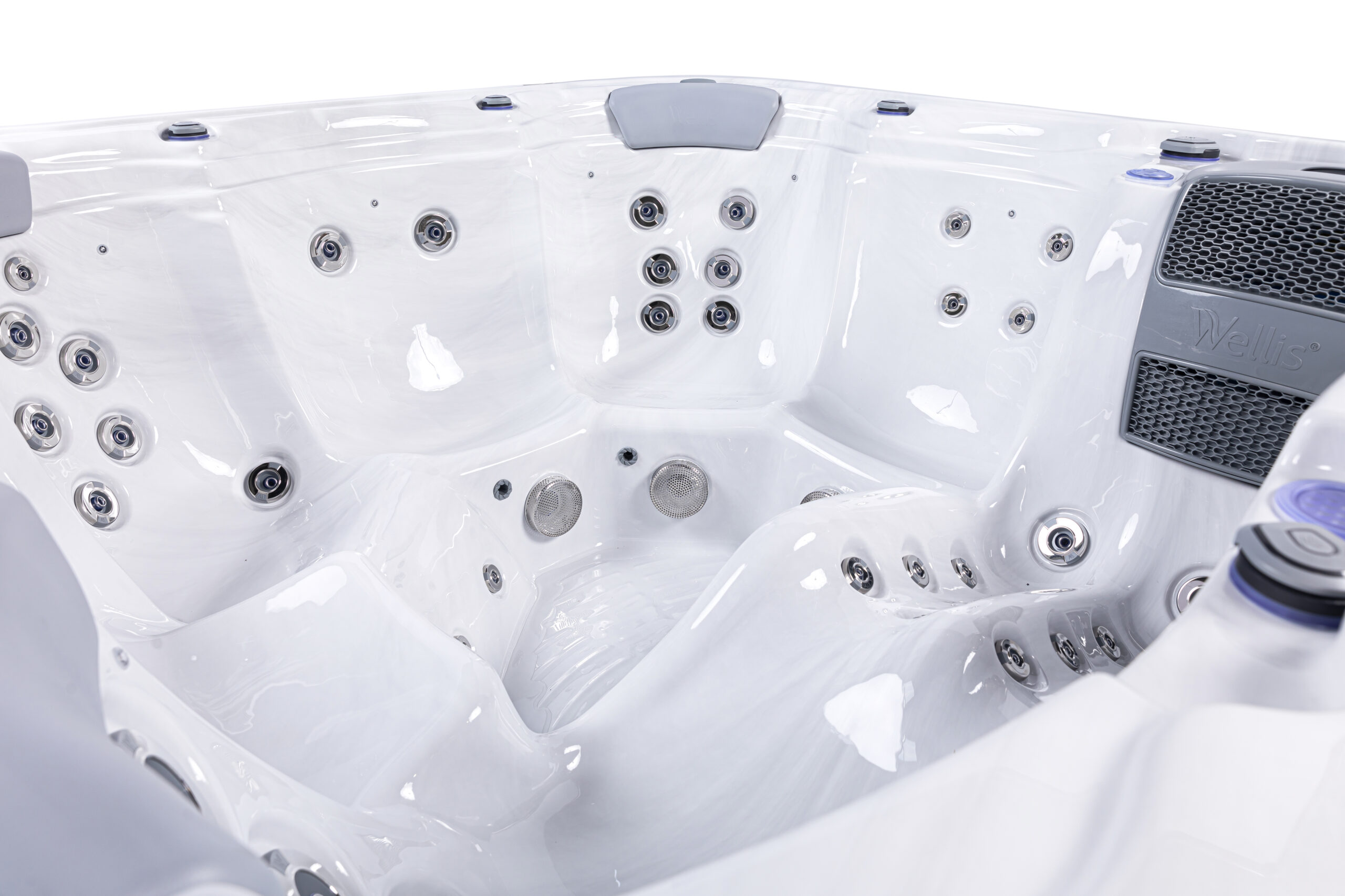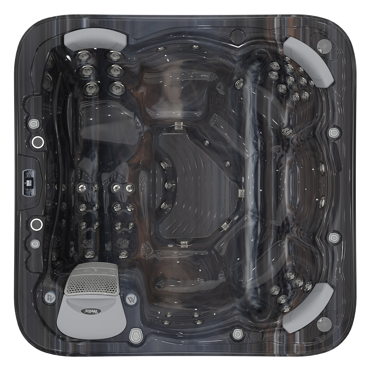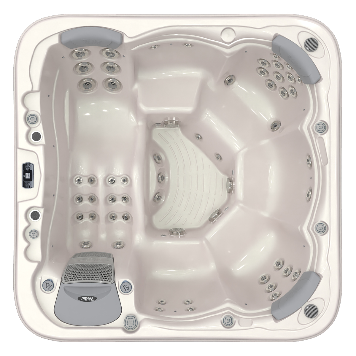 👤 1 Lounge Seat + 5 Upright 💧 52 Hydrotherapy Jets 📏 91" x 91" Square