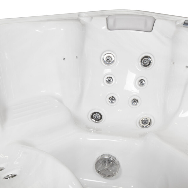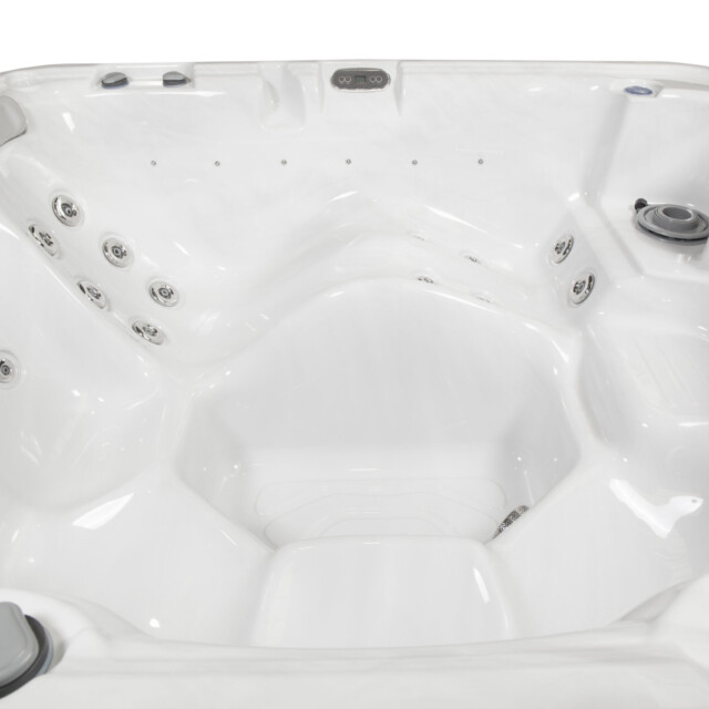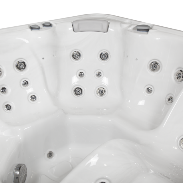 The **Milano P&P** offers a full-featured spa experience in a convenient Plug & Play package, requiring only a standard 120V/15A outlet. This 5-seat model includes a relaxing lounge seat and dedicated **Focus** and **Body Flow** massage seats, complemented by 36 hydrotherapy jets. It features Scandinavian insulation and the WellisGuard ECO sanitization system for efficiency and easy maintenance.