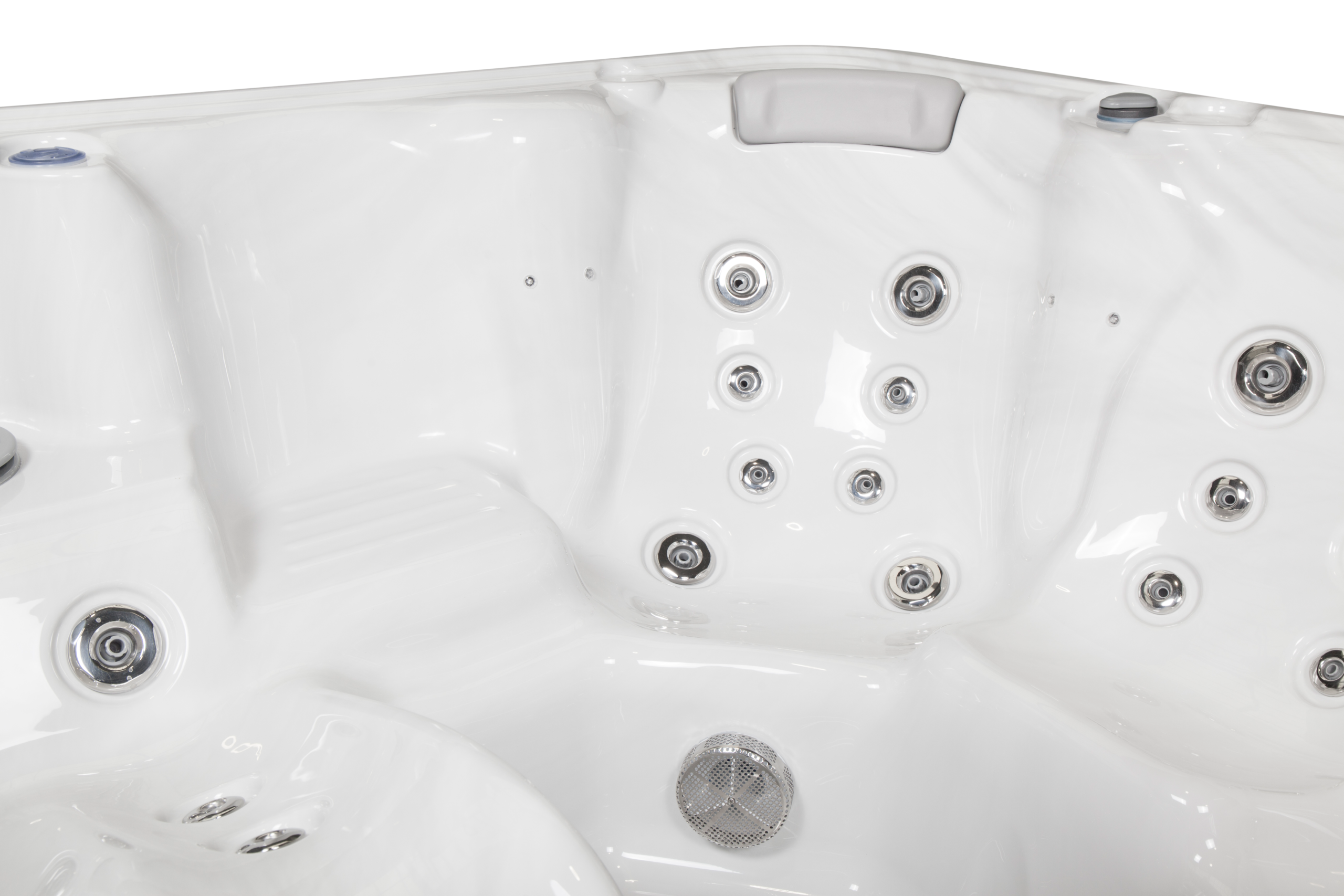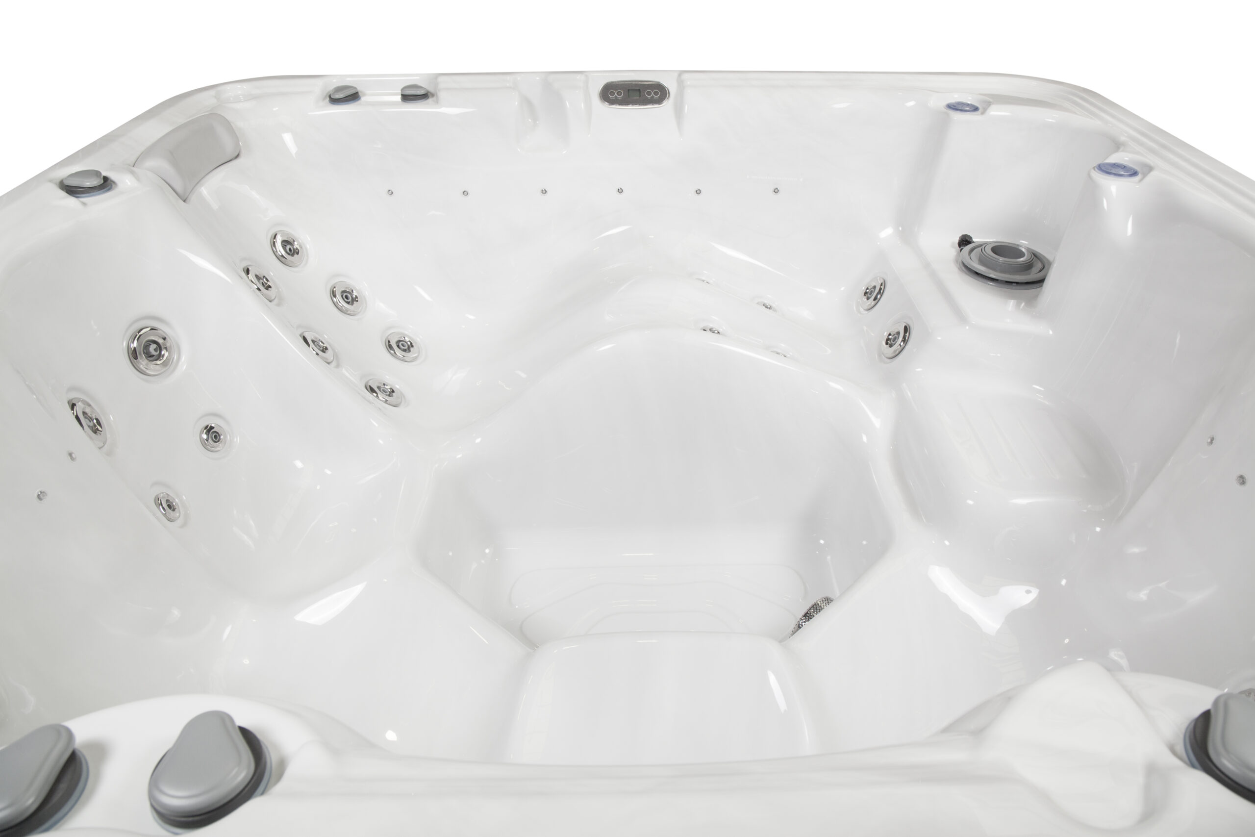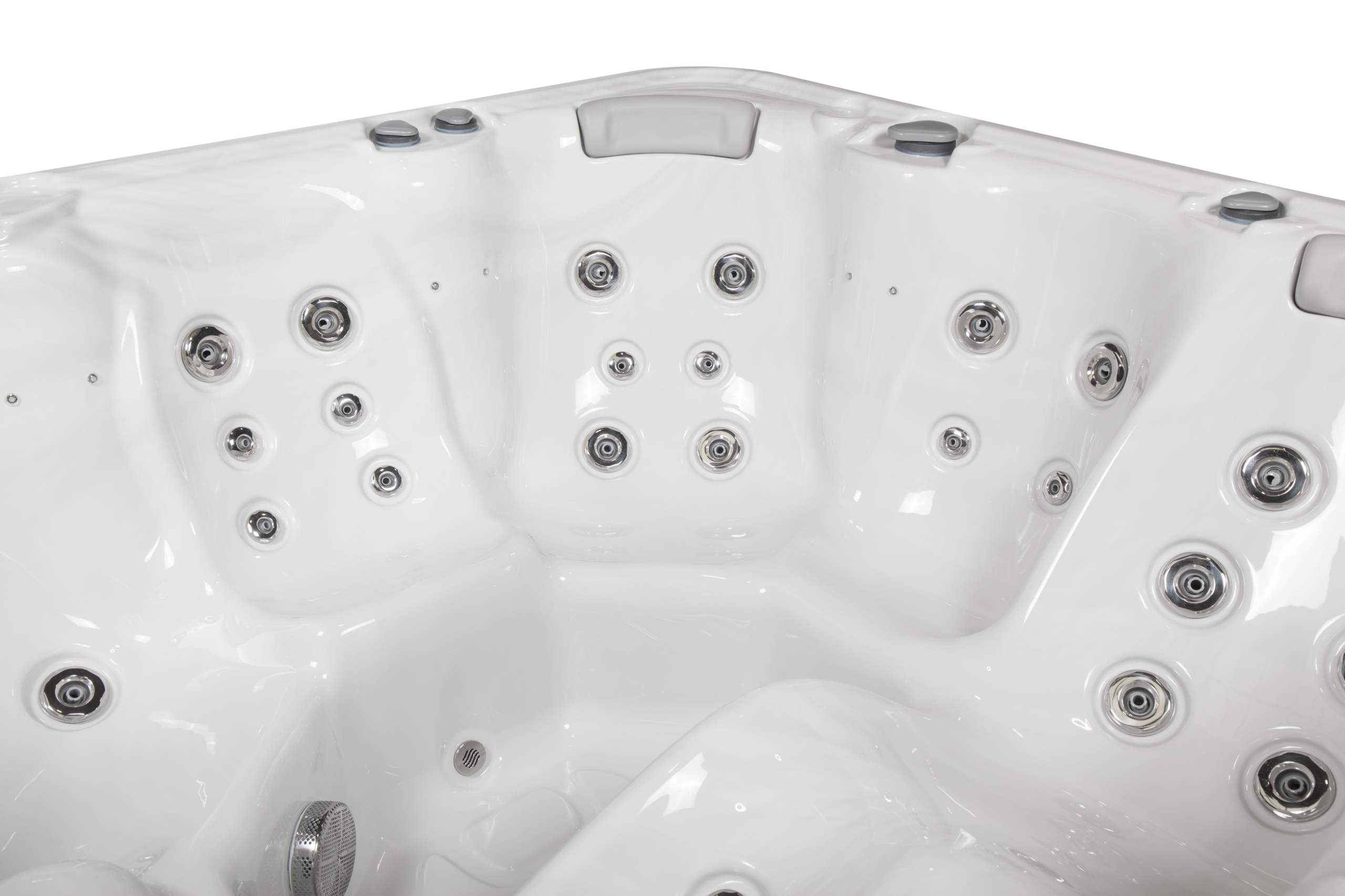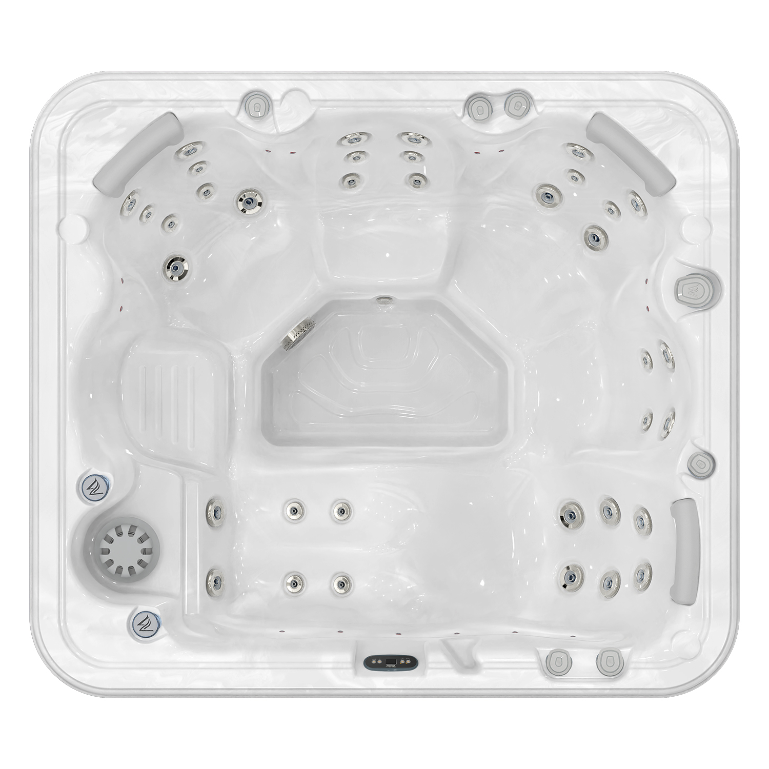 The **Milano P&P** offers a full-featured spa experience in a convenient Plug & Play package, requiring only a standard 120V/15A outlet. This 5-seat model includes a relaxing lounge seat and dedicated **Focus** and **Body Flow** massage seats, complemented by 36 hydrotherapy jets. It features Scandinavian insulation and the WellisGuard ECO sanitization system for efficiency and easy maintenance.